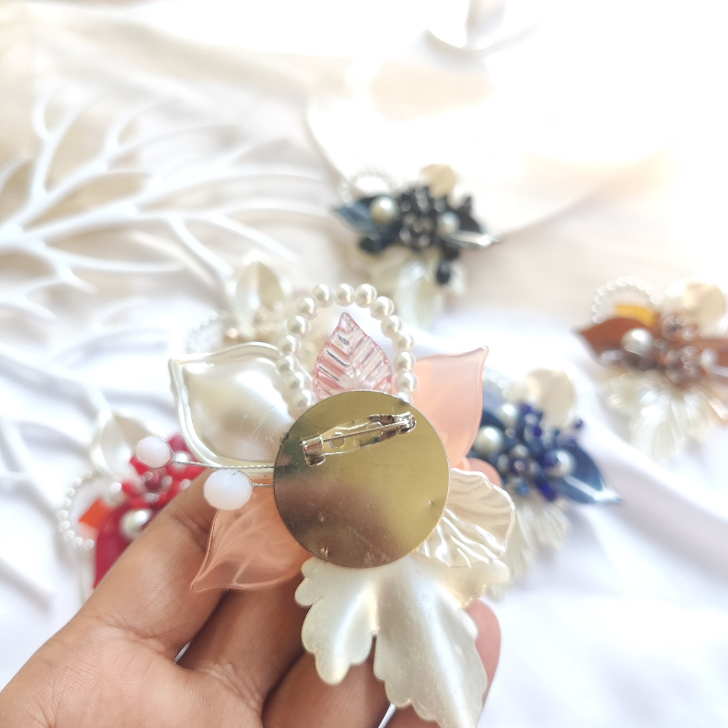 Bros Handmade "VAREN" -Rangkaian manik dan aksesoris dirangkai menggunakan kawat stainless/kawat chopper,kemudian bagian belakang ditutup dengan peniti mangkok sehingga tampak rapi dan sisa kawat tidak menusuk/ merusak kain jilbab. -Harga untuk 1 pcs bros. -Detail bros ada ditiap slide foto, -Ukuran 8*7 cm. -detail warna 90-99%,hanya karna perbedaan cahaya saja. -Foto video adalah real hasil karya kami imagine.collection. -Dengan 6 pilihan warna warni cantik siap dipadu padan dengan berbagai warna baju/jilbabmu. Pembelian sudah termasuk box packing. -Untuk Pembelian instant/menghendaki harga grosir,silahkan chat admin dahulu.