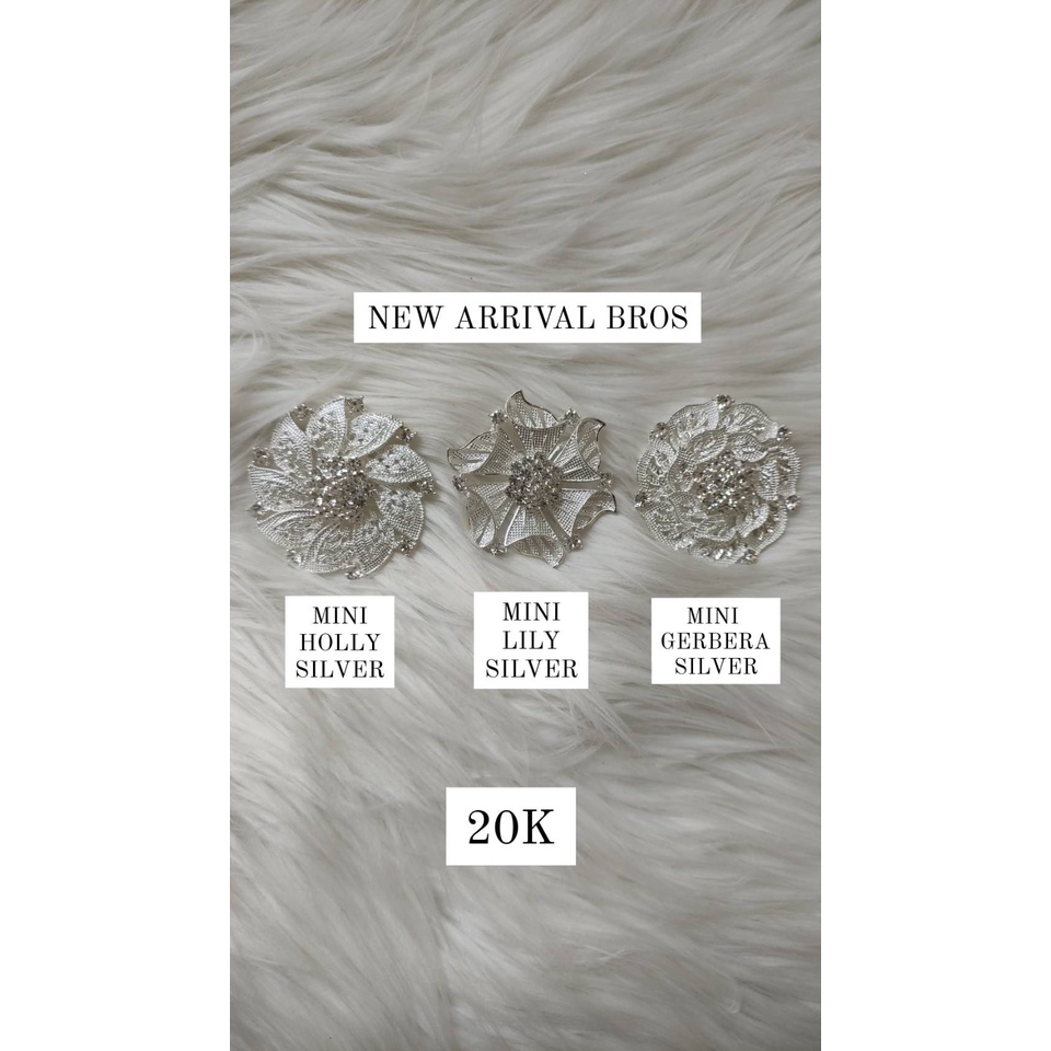 aneka macam bros dengan pilihan warna silver maupun gold yang mewah Harga mulai dari 20-40k