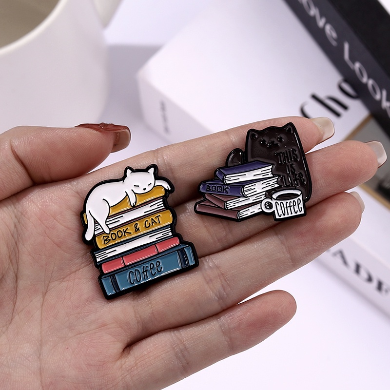 Detail Bros Pin Enamel Bentuk Kartun Kucing Dengan Buku Untuk Anak