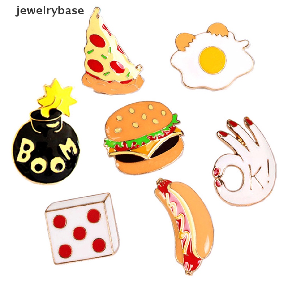 Detail Bros Pin Enamel Bentuk Kentang Goreng Telur Burger Pizza Ikon Untuk Jaket Ransel