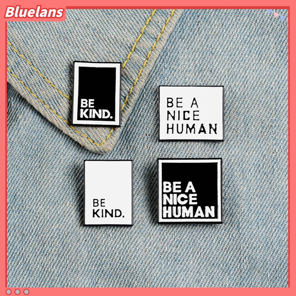 Detail Bros Pin Enamel Bentuk Kotak Tulisan BE A NICE HUMAN Untuk Unisex