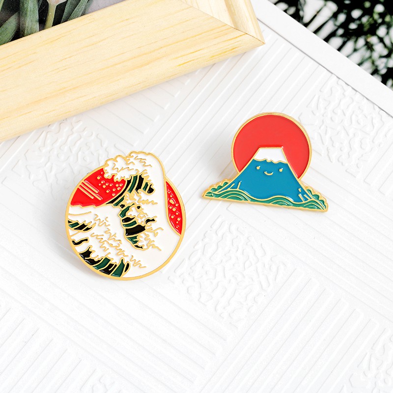 Detail Bros Pin Enamel Desain Kartun Sun Mount Fuji Ombak Laut Untuk Hadiah Teman