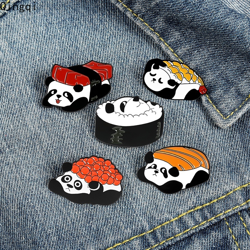 Detail Bros Pin Enamel Desain Panda Sushi Beruang Nasi Gulung Sashimi Barbecue Gaya China Untuk Hadiah Anak