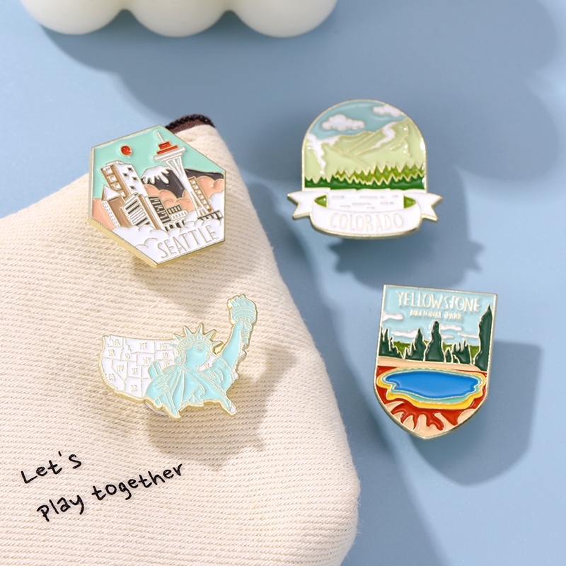 Detail Bros Pin Enamel Desain Patung Liberty Pasang Tas Ransel