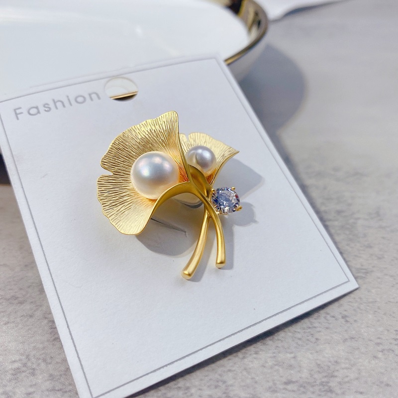 Detail Bros Pin Korsase Bentuk Daun Aksen Mutiara Untuk Wanita