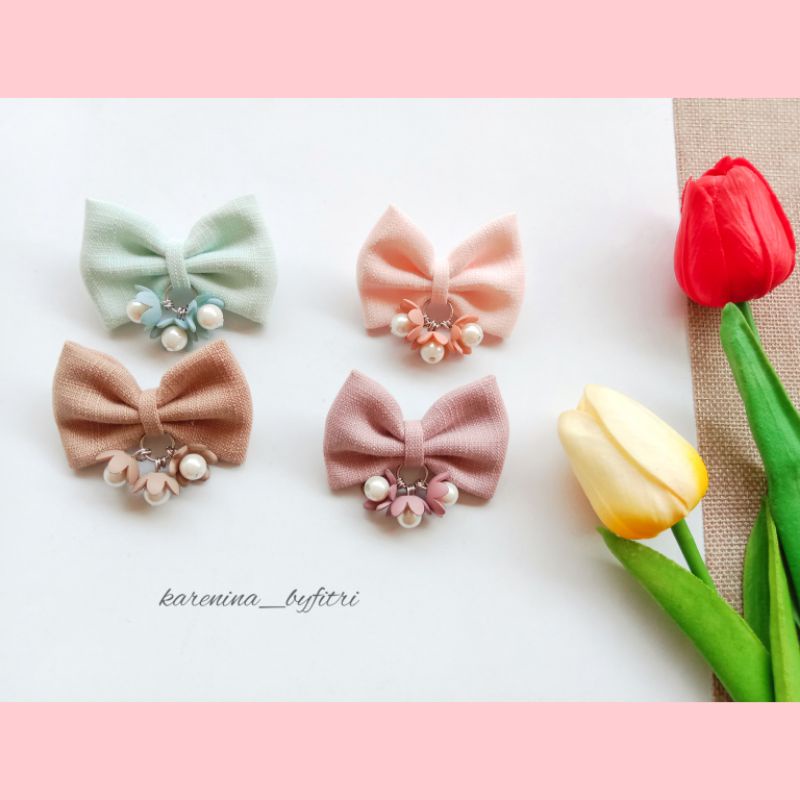 Aksesoris Fashion > Aksesoris Tambahan > Bros & Pin > Bros Pita Bandul Bunga Mutiara Bros Jilbab Murah
