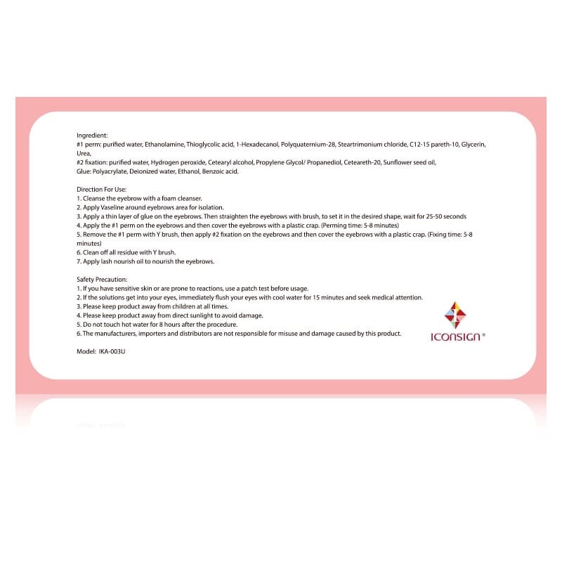 5. Lepaskan perm #1 dengan sikat Y, lalu aplikasikan fixation #2 pada alis dan tutup alis dengan plastik.( Waktu pemasangan: 5-8 menit).