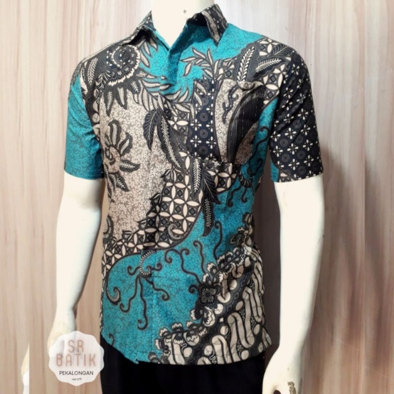 Detail BSWART Batik HRB026 Kenongo Hem Pendek Padi Pekalongan M L XL Batik Pria MURAH Modern