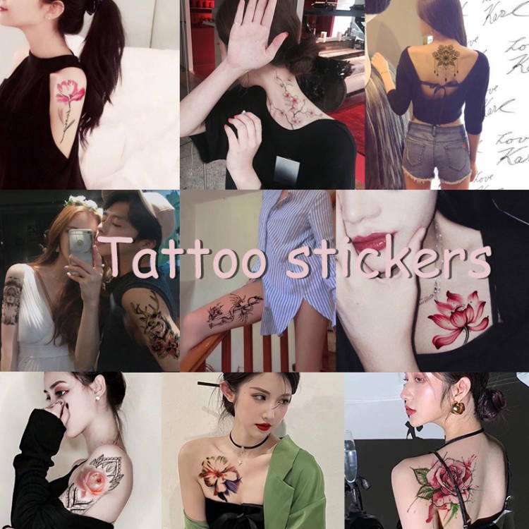 Detail 【BTI】Temporary Tato Palsu Bunga Tengkorak Wanita Lengan Besar Tahan Air Warna Stiker Tato