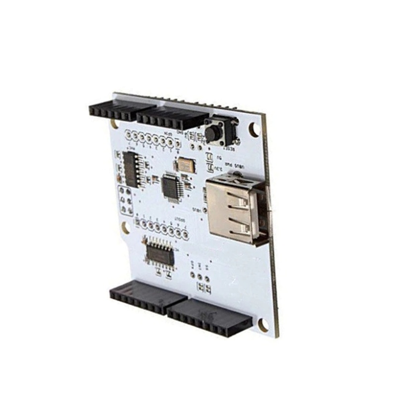 Pelindung Host USB V2.0 untuk Mendukung Android ADK USB HUB Fitur: baru dan berkualitas tinggi Semasa menyahpepijat, telefon perlu hidupkan penyahpepijatan USB. Papan ekspansi USB Host dan perlu digunakan untuk papan kontrol utama. Dukungan untuk sebagian besar papan kendali utama Ardu. Kelas perangkat berikut saat ini didukung oleh perisai:HID perangkat, seperti keyboard, mouse, joystick, dll. Konverter USB ke serial – FTDI, PL-2303, ACM, serta ponsel tertentu dan penerima GPS. Ponsel dan meja Android yang mampu ADK. Kamera Digital –, Powershot, DSLR dan P&S, serta PTP. Dukungan bagi lebih banyak perangkat saat ini dalam pengembangan: Dukungan untuk, dll. Juga mendukung MEGA1280, 2560. Ini membuat Ardu sangat nyaman untuk berkomunikasi dengan perangkat budak USB, seperti keyboard USB, mouse, disk U, kamera, Android, dan sebagainya. Menggunakan Perisai Host USB dengan Ardu juga dapat menerapkan ADK. Papan Ekspansi Pelindung USB USB / Edisi Ekspansi Hos USB-Biarkan Ardu mendukung ponsel Android Anda.