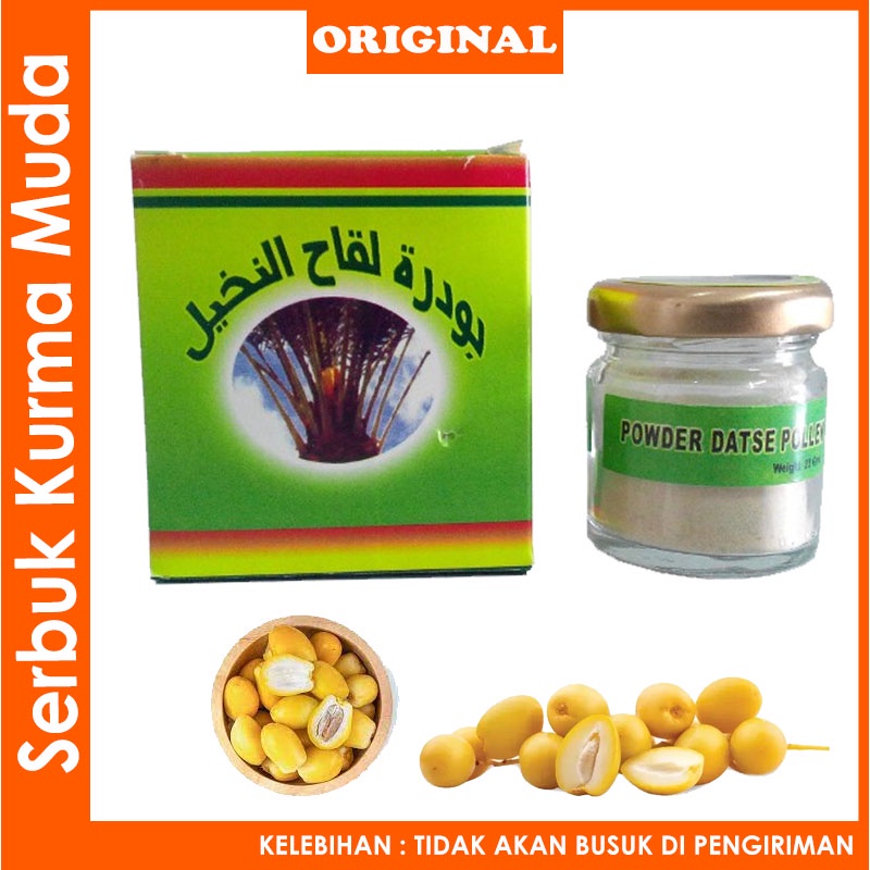 Detail Kurma Muda Promil Serbuk Riswa - Berat Bersih 25 Gr - Serbuk Dari Kurma Muda Kuning - Khasiat Sama Dengan Buah Kurma Muda - Digunakan Suami Istri - Kemasan Botol Kaca - Kualitas Premium