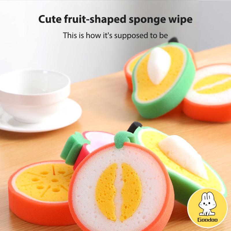 Fitur -Bentuk Buah, Dekontaminasi Kuat, Menebal, Lembut, Menggemaskan -Dengan spons tebal, perawatan lembut, tidak melukai peralatan makan. Didesain dengan bentuk buah, sabut gosok ini memiliki tampilan yang lucu dan menggemaskan. -Produk ini cocok untuk mencuci piring, panci, cangkir, menyeka desktop, dll.