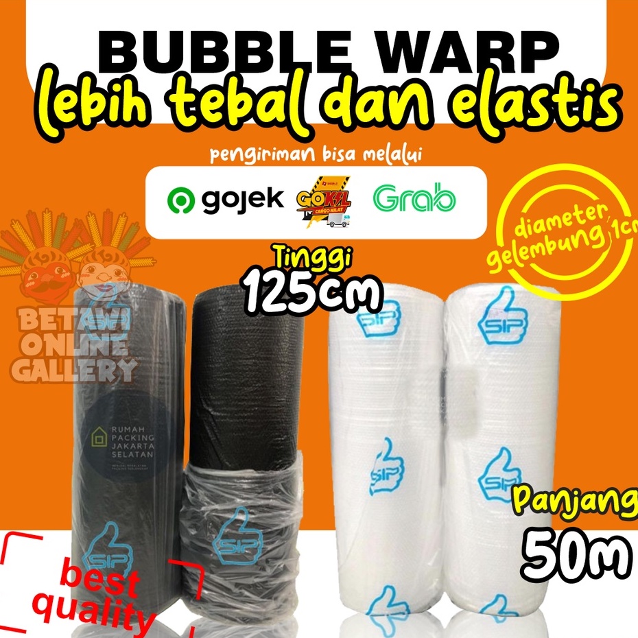 PRODUK BARU! Bubble Wrap / Plastik Pembungkus Gelembung Panjang : 50 meter Tinggi : 125 cm Warna : Hitam & Bening Merk : SIP Berat : 3 Kg 2,7Kg Lebih bening dari bubble lainnya Cocok untuk membungkus makanan