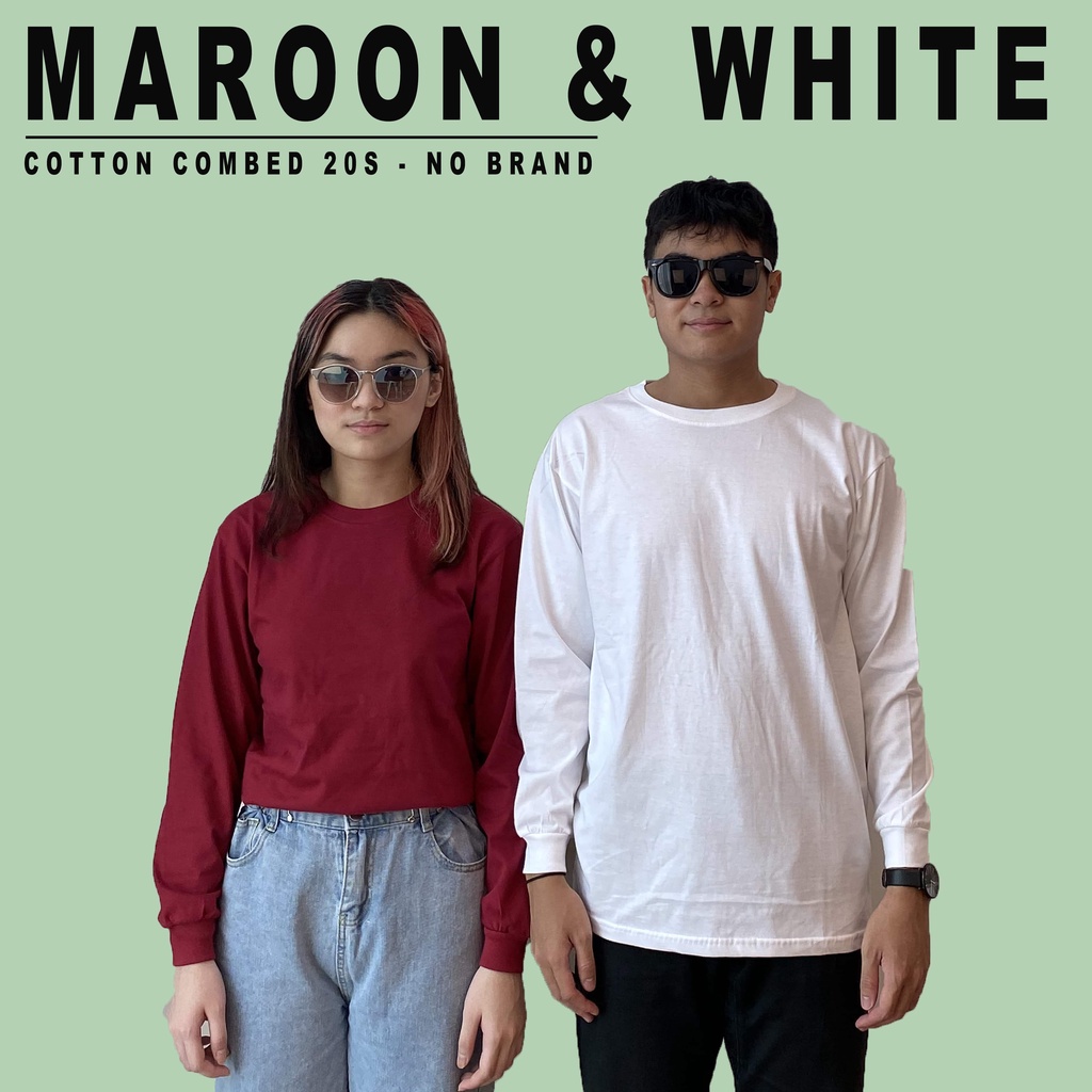 Detail BUBI KAOS POLOS PANJANG MAROON & WHITE COTTON COMBED 20S | 100% KATUN ADEM TEBAL MENYERAP KERINGAT