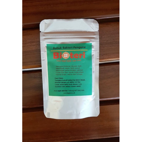 * bubuk bakteri Bioteri akan mengurai kotoran. * Tidak bau dan ramah lingkungan. * Mencegah Septic tank penuh. * Mencegah penyumbatan di saluran. * Hemat biaya, waktu dan tenaga.