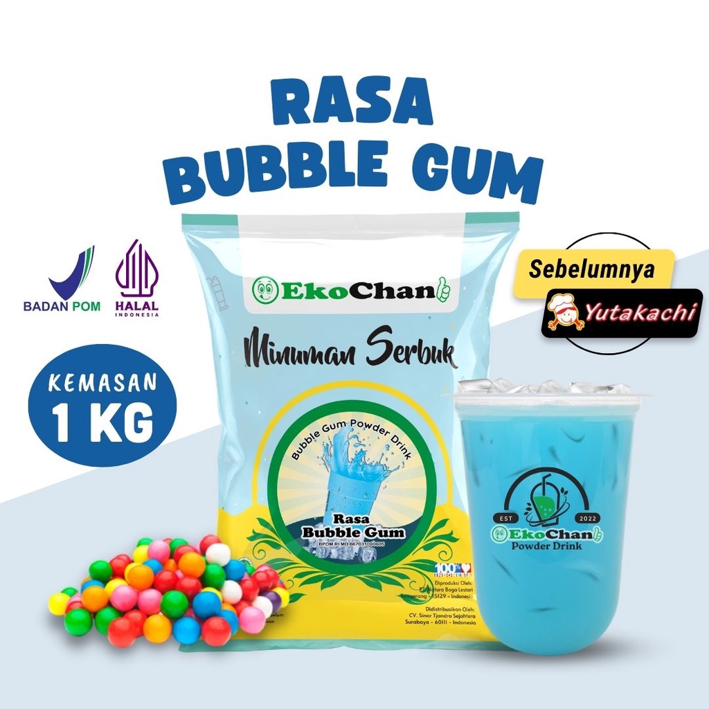 Detail Bubuk Minuman Rasa Bubble Gum 1 kg EkoChan/Serbuk Minuman Instan Permen Karet Aneka Rasa/ Powder Drink Milkshake / Pusat bumbu