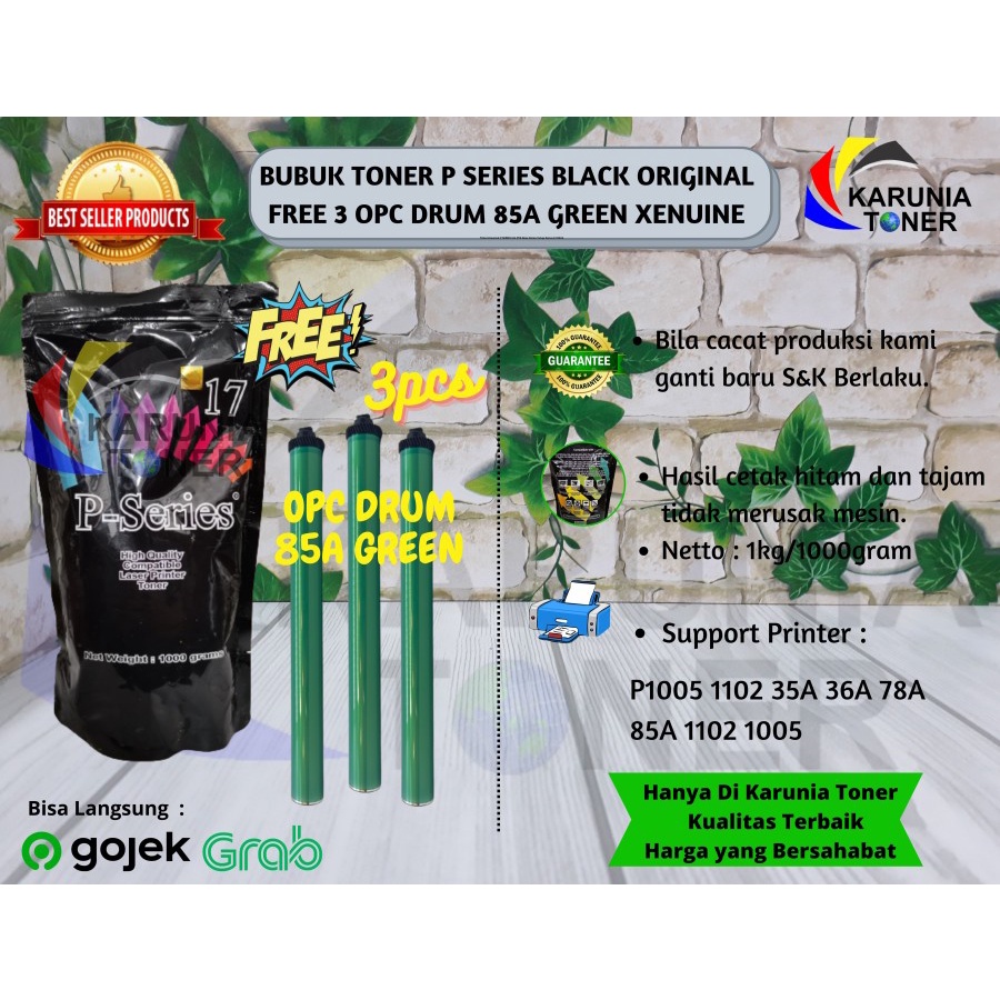 Syarat dan Ketentuan : ------------------------------------ - Setiap pembelian 1 BAG Serbuk Toner P-series Black 1 Kilogram, anda mendapatkan bonus 3 PCS OPC DRUM HP 35A / 85A 79A XENUINE Green