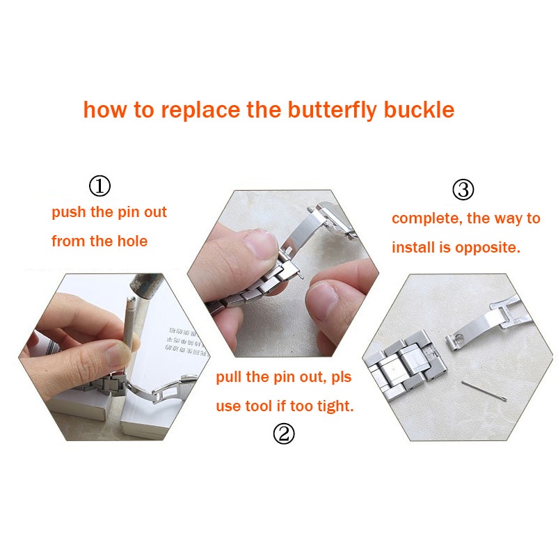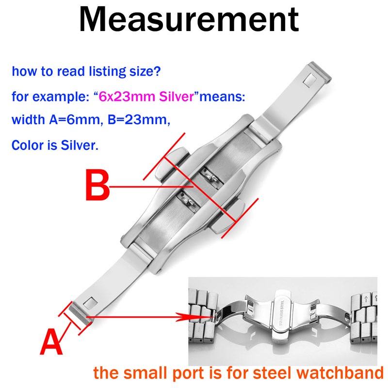 Item Type: Butterfly Buckle Buckle material: 303 stainless steel Buckle Color: Silver Band Width: 20mm, 22mm Band Weight: 15g