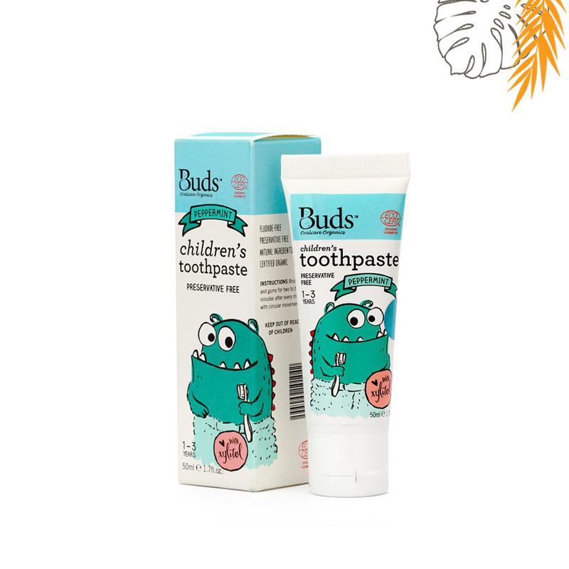 Buds Organics Toothpaste With Xylitol Peppermint merupakan pasta gigi anak dengan kandungan xylitol yang berguna untuk memperkuat gigi.