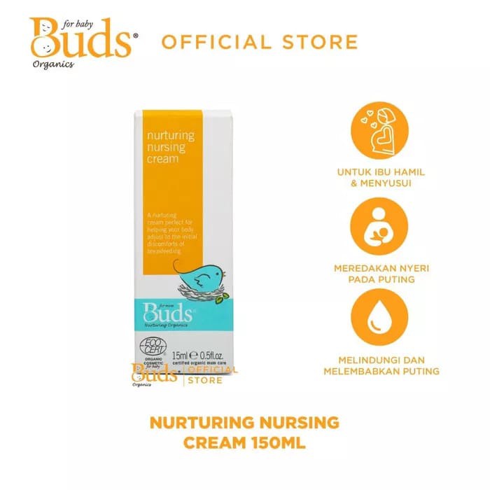Kelebihan Nurturing Nursing Cream dibandingkan Krim lainnya: 1. Terbuat dari Bahan organik yang berkualitas karena pengolahan organik yang telah lolos pengujian Ecocert 2. Bebas pewangi buatan dan bahan kimia berbahaya bagi kulit ibu 3. Kandungannya yang bermanfaat mudah diserap oleh kulit payudara dan puting ibu 4. Menyembuhkan Luka dan rasa sakit pada puting payudara Ibu dengan cepat. 5. Aman tertelan oleh bayi Anda pada saat menyusui karena Buds menggunakan bahan organik yang teruji secara medis
