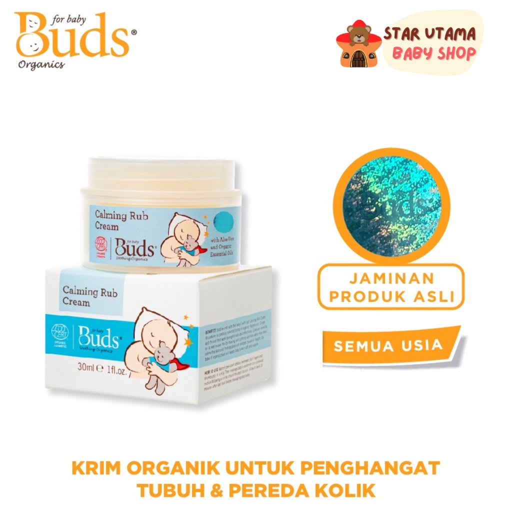 Buds Calming Rub Cream meruakan rub cream dengan kandungan organic peppermint, ginger, fennel, lavender essential oil, dan aloe vera yang diformulasi unutk menghangatkan perut si kecil serta dapat membantu meringankan ketidaknyamanan akibat kolik.