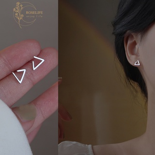Roselife 1 Pasang Anting Tusuk Gantung Bahan Sterling Silver 925 Desain Segitiga Hollow Untuk Wanita