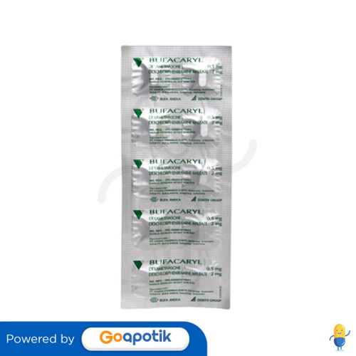 Deskripsi : PENGGUNAAN OBAT INI HARUS SESUAI PETUNJUK DOKTER.Digunakan untuk mengatasi reaksi alergi yang memberi respons terhadap kortikosteroid, seperti urtikaria, rinitis alergi, dermatitis akut atau kronik, hay fever, konjungtivitis alergi. | Komposisi : Tiap kaplet mengandung dexamethasone 0.5 mg dan dexchlorpheniramine maleate 2 mg | Dosis : Dewasa : 1-2 tablet, 4 kali sehari. Anak 6-12 tahun : 1/2 tab, 3-4 kali sehari | Indikasi : Digunakan untuk mengatasi reaksi alergi yang memberi respons terhadap kortikosteroid, seperti urtikaria, rinitis alergi, dermatitis akut atau kronik, hay fever, konjungtivitis alergi. | Perhatian Khusus : Tidak untuk pengobatan sakit otot pada gejala-gejala flu dan tidak untuk mengobati rematik, lumbago, sakit punggung, bursitis, sindroma bahu dan lengan - Karena dapat menimbulkan agranulositosis yang berakibat fatal, maka sebaiknya tidak digunakan dalam jangka panjang terus menerus - Hati-hati pada penderita yang pernah mengalami gangguan pembentukan darah / kelainan darah, gangguan fungsi hati atau ginjal. Karena itu perlu dilakukan pemeriksaan uji fungsi hati dan darah pada penggunaan yang lebih lama dari penggunaan untuk mengatasi rasa sakit akut - Pada pemakaian jangka lama dapat timbul neuropathy yang akan berangsur hilang bila pengobatan dihentikan | Kemasan : Strip, 10 Kaplet | NIE : DKL0600914704A1