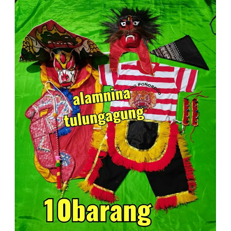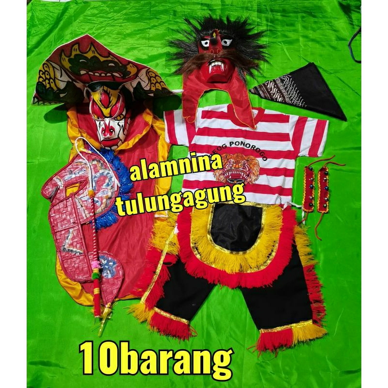 Pakaian Pria > Pakaian Tradisional > Pakaian Tradisional Lainnya > bujang ganong kuda lumping cambuk barongan setelan kaos reog ponorogo udeng jawa gelang kaki