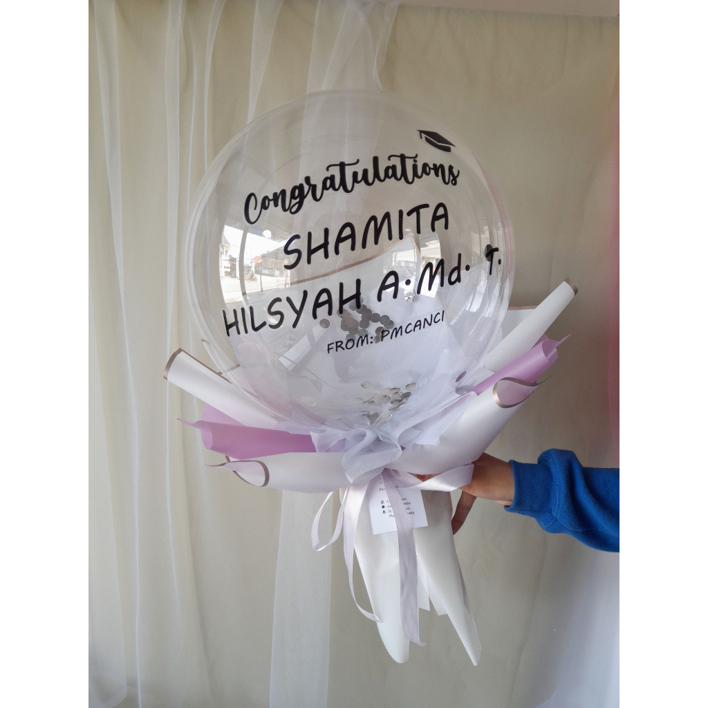 Buket balon ukuran Medium. Tahan bulanan selama tidak tertusuk jerum atau gunting.