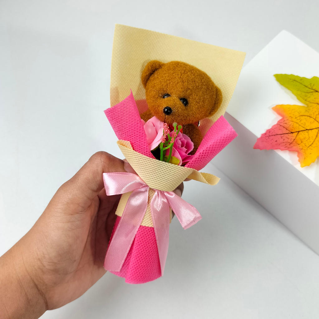 Detail buket boneka mini bear buket bunga artificial bouquet kecil