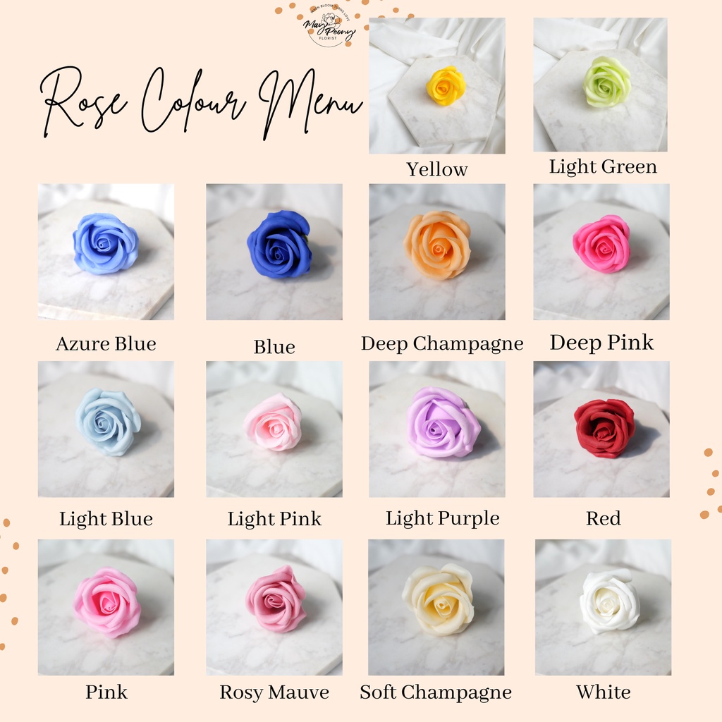 Pilihan warna rose tertera di rose colour menu yang terdapat di gambar diatas, silahkan pilih warna yang anda inginkan, bebas memlih satu atau dua atau tiga warna. Harap diisi warna yang anda pilih di keterangan pada saat check out ya.