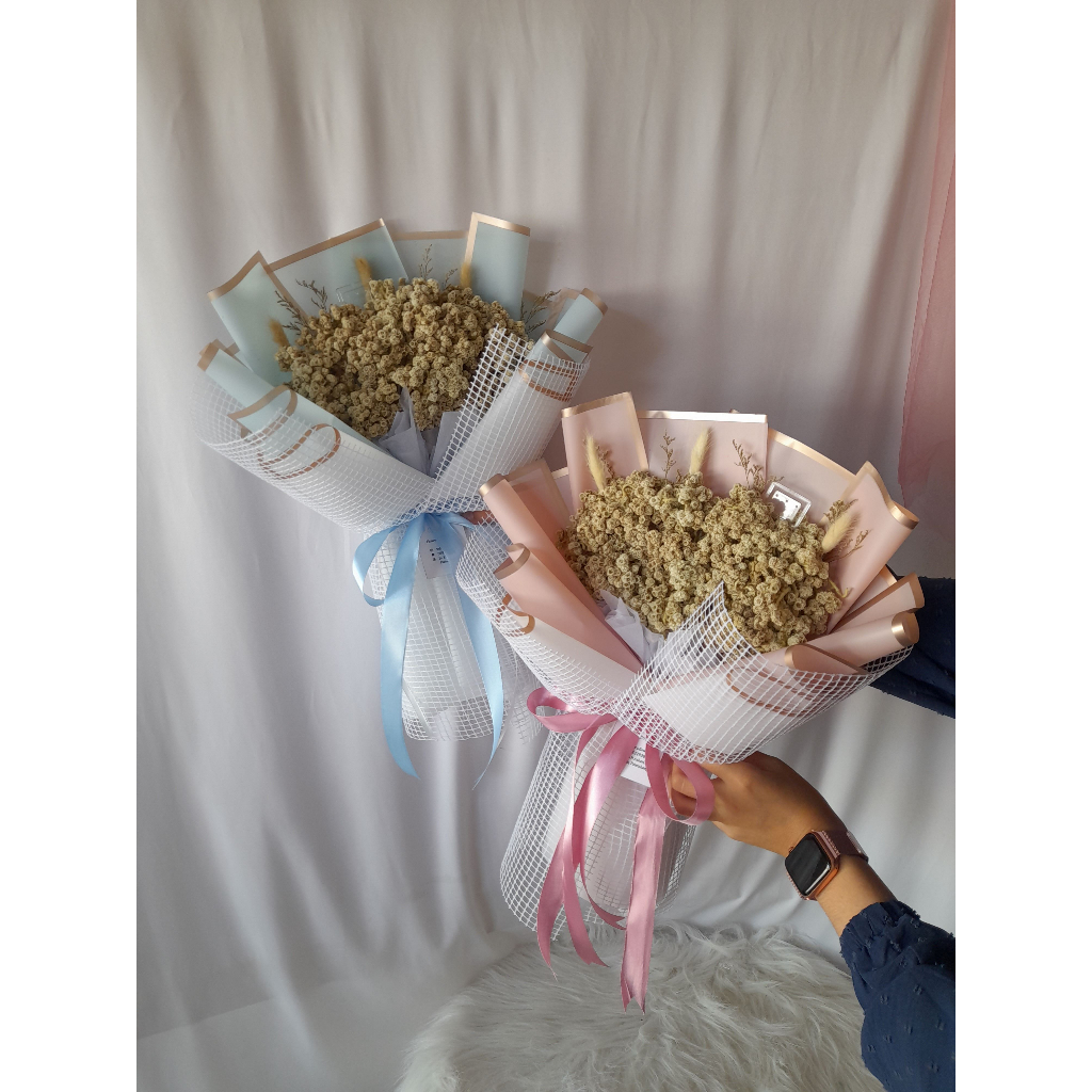 Buket Bunga Edelweiss Asli yang telah di proses sehiangga awet tahunan, cocok untuk kado wisuda, kompre, ulang tahun, bahkan anniversary.