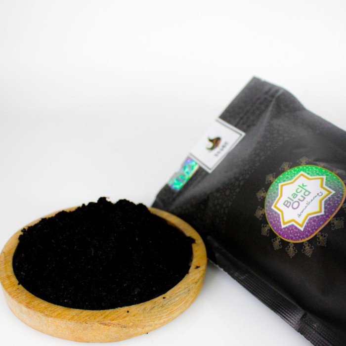 Nama Produk : Bukhur Qodha 100 gr Varian : Black Oud Jenis : Serbuk Isi : 100 gr Berat : ±200gr/kemasan