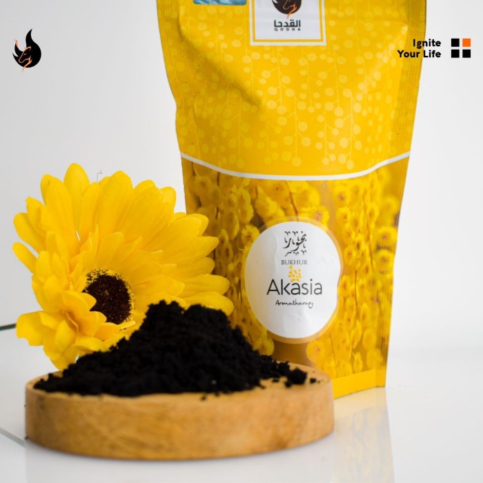 Nama Produk : Bukhur Qodha 100 gr Varian : Akasia Jenis : Serbuk Isi : 100 gr Berat : ±200gr/kemasan