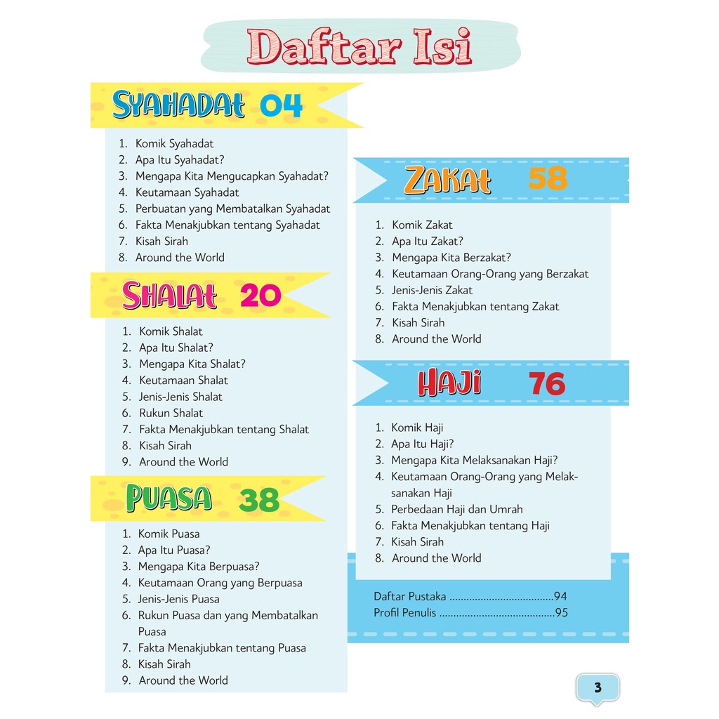 Buku Amazing Islam: Mengukuhkan Kecintaan Anak pada 5 Pilar Islam ini akan mengajak Teman-Teman lebih mengetahui tentang rukun Islam dan keindahan Islam. Ada bacaan shalat yang dapat kalian hafalkan juga ada fakta-fakta menakjubkan yang menambah kesyukuran.