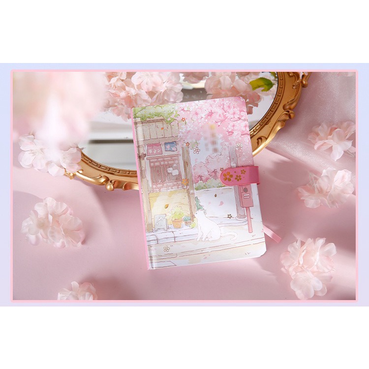 Buku & Alat Tulis > Buku Tulis & Kertas > Notebook & Notepad > Buku Diary Diary Notee Book Aesthetic gambar kucing ala Japanese dan korea cherry blossom Sakura full color page magnetic buckle book notebook cute office notepad handbook @banyak