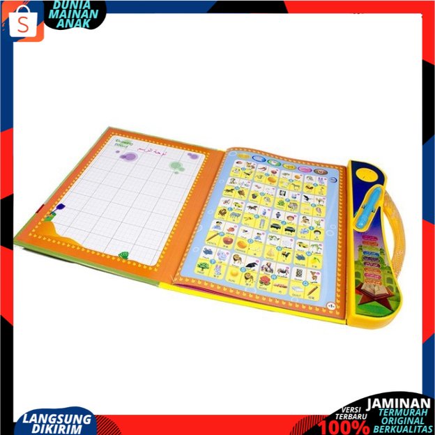 Deskripsi : - 4 Bahasa (Indonesia,Inggris,Arab,Mandarin) - Ukuran Buku 26x25 cm - Touch Pad - Termasuk Pen & Penghapus - Menggunakan 3 Buah Baterai AA (Baterai Tidak Termasuk) - Ukuran Kemasan 25x26 x2 cm - Sudah standar SNI - Cara penggunaan di setiap lembar buku terdapat tombol GO untuk memulai pemakaian pembelajaran