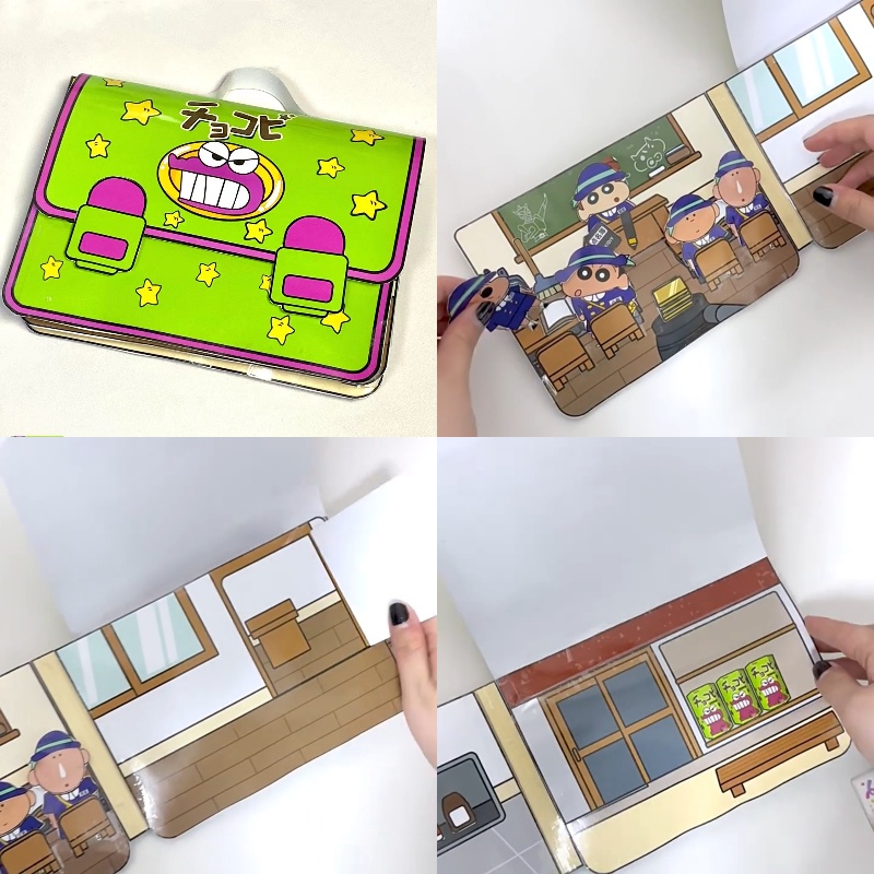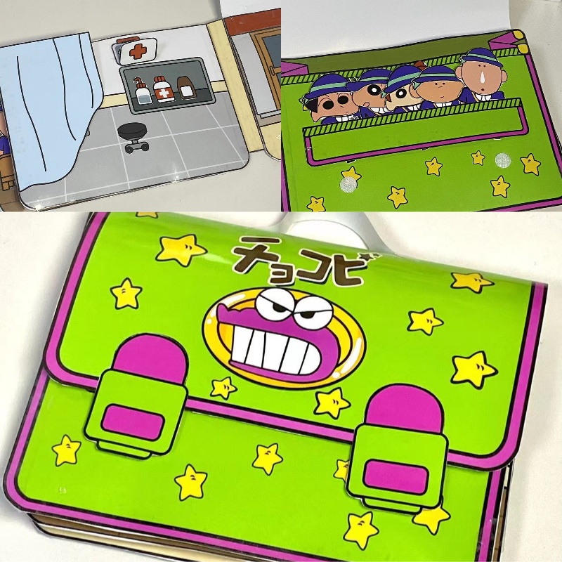 Tonjolan: Tonjolan: Tonjolan: Terbuat dari bahan kertas ramah lingkungan Tema Crayon Shin-chan yang lucu Mendorong imajinasi dan pengembangan keterampilan motorik halus Aktivitas mendidik dan mendidik anak-anak untuk anak-anak Flip halaman dan karakter bergerak untuk pengalaman bermain yang dinamis