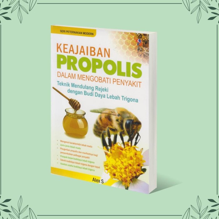 Dalam buku ini akan disuguhkan mengenai karakteristik umum lebah, khasiat madu, jenis-jenis lebah madu, propolis dan manfaatnya, hingga teknik budidaya lebah trigona. Saat ini bisnis propolis sedang naik daun. Bagi anda yang ingin mencoba peruntungan dalam bisnis propolis, buku ini layak dimiliki.