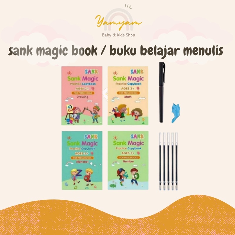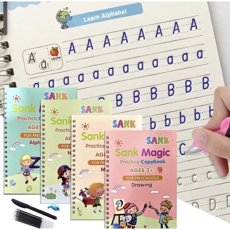 Spesifikasi Bahan kertas : Karton putih Ukuran : 13 x 19 cm/buku Berat estimasi : 300gr Usia : 3+ Isi : - 1 buku Alphabet - 1 buku Math - 1 buku Drawing - 1 buku Number - 1 set Pena