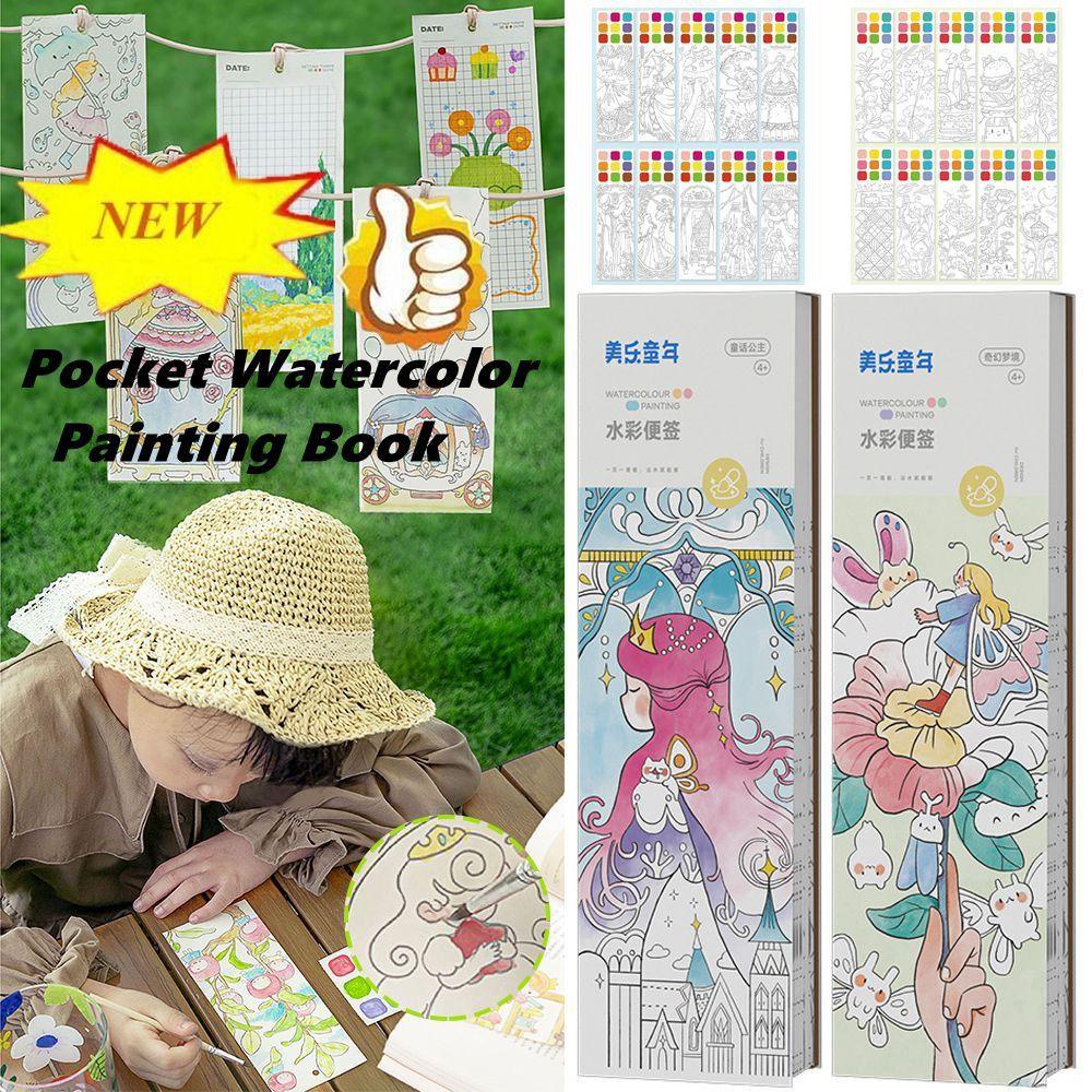 1 * sikat Saku Cat Air Buku Lukisan Warna Air Pigmen Buku Mewarnai Palet Saku Cat Air Portabel Perlengkapan Lukisan Seni Dapat Digunakan Kembali Hadiah Kreatif untuk Siswa Penanda Buku Anak Desain Baru