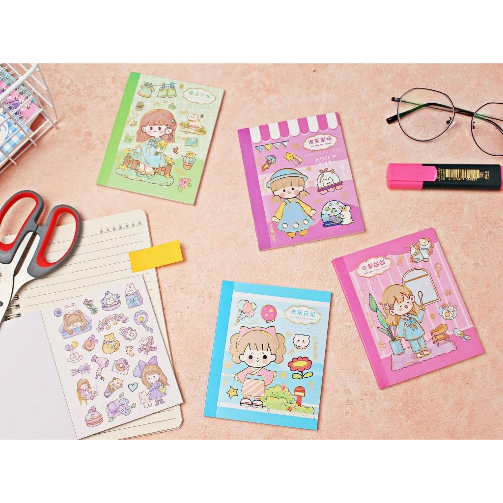 ------------------------------------- Buku Stiker Cute Girl 24 Lembar 4 Warna Aesthetic Hand Tent Tersedia 4 Warna