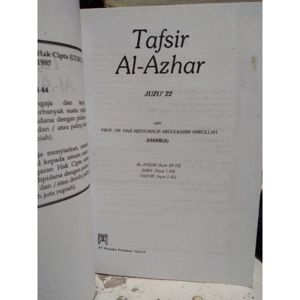 Buku Tafsir al Azhar prof Dr Hamka juz 22