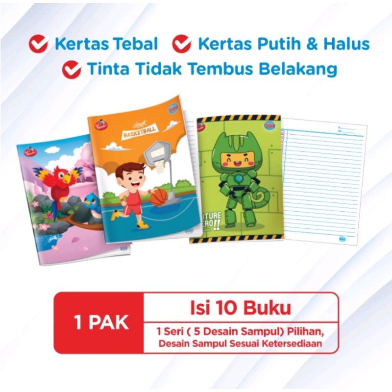Isi 38 Lembar : Ukuran 210 x 160 mm Kertas 60 GSM Isi 10 buku/pak Berat 1000 gr