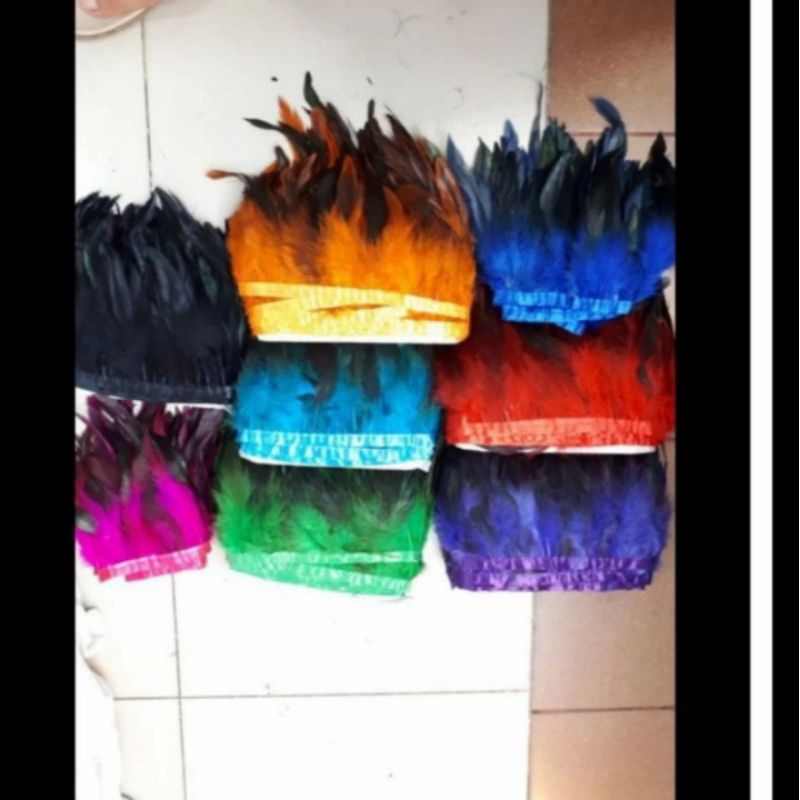 Bulu renda ayam jago,biasa di gunakan buat acc rambut,baju,dekor dll Panjang 1 meter Harga Utk 1meter ya:) Warna yg ready -merah -hitam -biru tua -biru muda -ungu -fanta -hijau