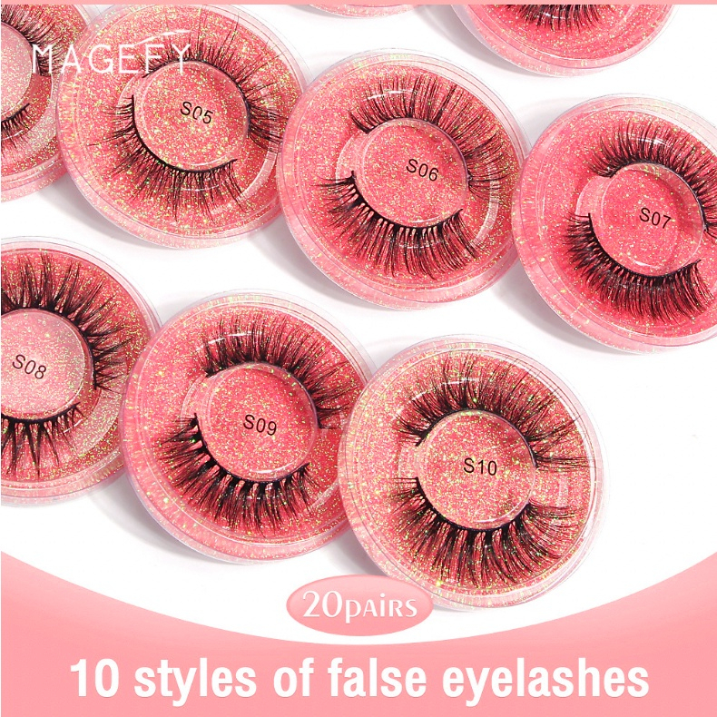 Spesifikasi: 100% baru dan berkualitas tinggi Merk : MAGEFY Model: S01-S10 Jumlah: 1 pasang/kotak Panjang: sekitar 1-1,5 cm Jenis Rambut: Rambut Sintetis Jenis bulu mata palsu: bulu mata penuh Bahan untuk bulu mata palsu: serat sintetis berkualitas tinggi Paket termasuk: 1 pasang bulu mata palsu tebal 3D