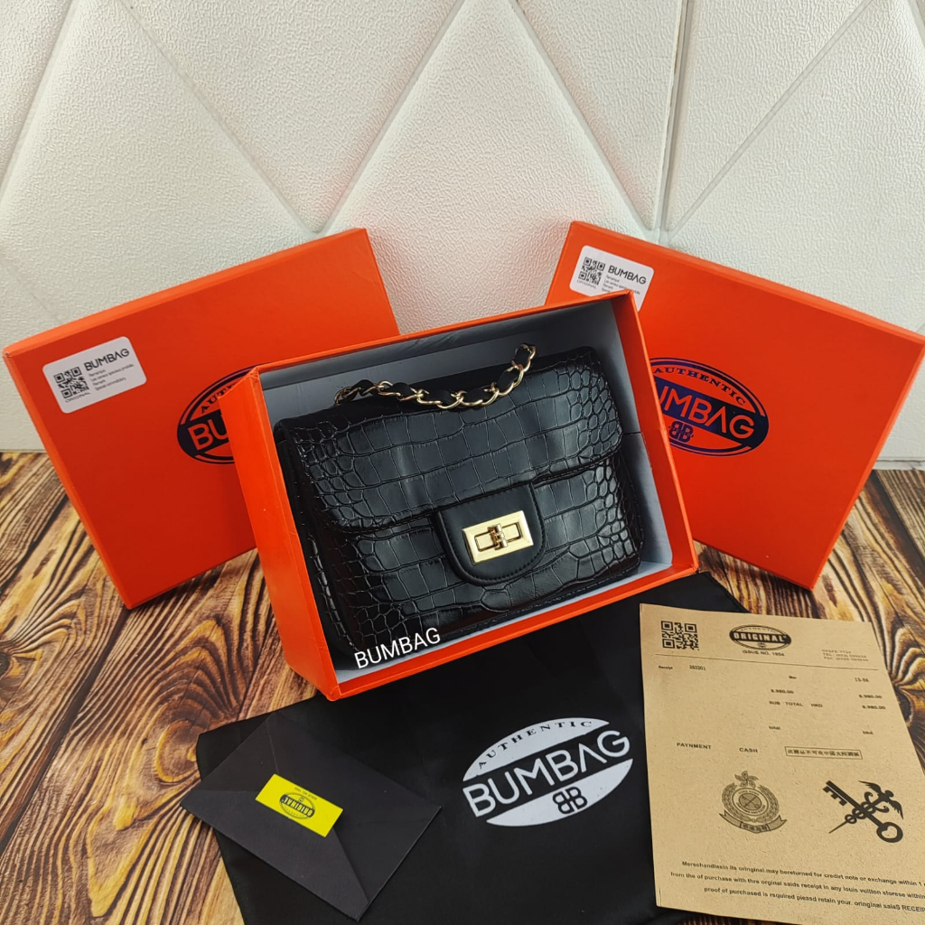 BUMBAG Tas Selempang Wanita Import Bag Wanita Hand Bag Wanita Silin Bag Jinjing Tenteng Croco - Sophie BABY CROCO Bag - TAS IMPORT BABY CROCO SMALL FREE BOX AAC GOLD 2 FUNGSI UK19 BRANDED BAG SLEMPANG MINI MIRROR SUPER VIBELLESHOPBAGS KODE 191597