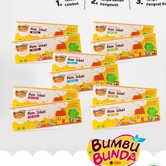 Selain varian Abon Sapi, Bumbu Bunda Abon Sehat juga memiliki varian lain seperti Abon Ayam, Abon Salmon, Abon Lel dan Abon Tuna . Teksturnya halus, tidak membuat tersedak saat makan. Selain itu, abon dari Bumbu Bunda by elia NON MSG dan NON Pengawet sehingga lebih sehat untuk di konsumsi.