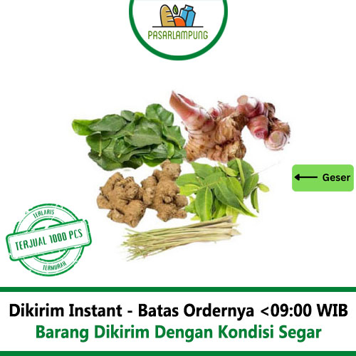 Deskripsi : bumbu dapur lengkap terdiri dari jahe,laos,kunyit,sereh,daun jeruk dan daun salam.