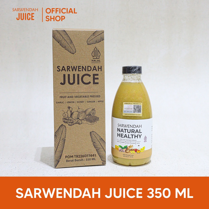 SARWENDAH JUICE ( JUS BAWANG ) terbuat dari madu , lemon , cuka apel , jahe merah dan bawang putih BPOM TR226077441